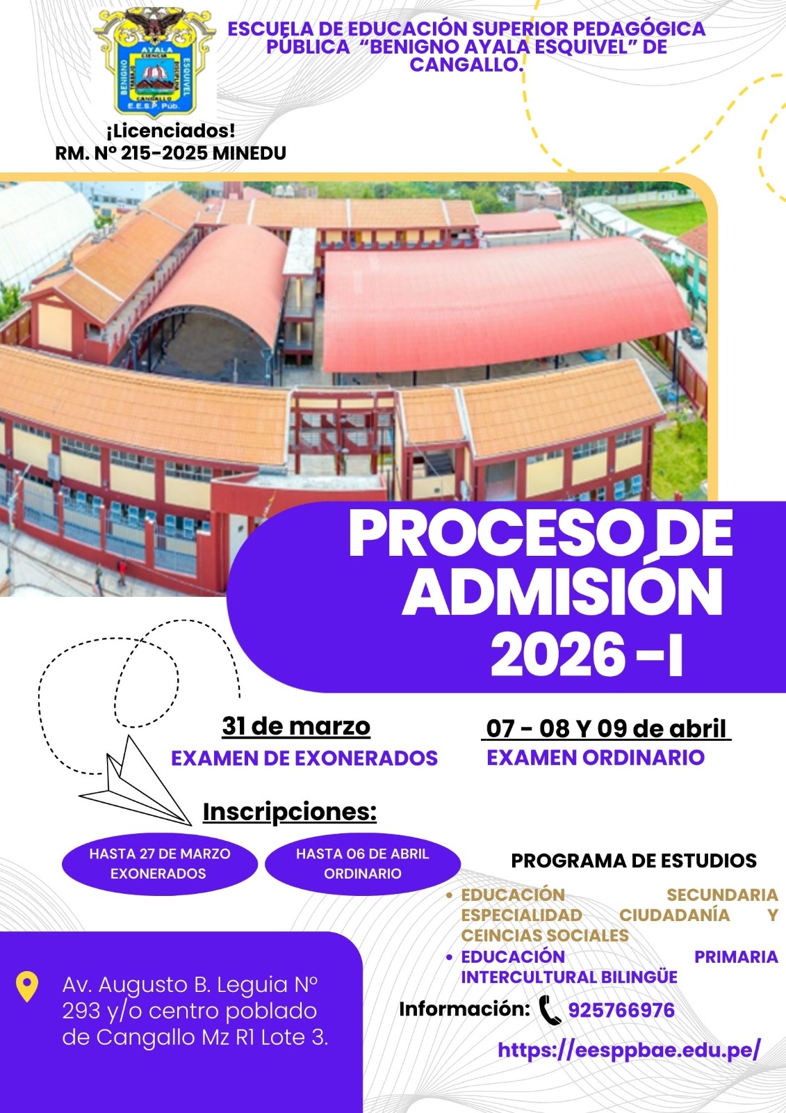 La Escuela de Educación Superior Pedagógica Pública «Benigno Ayala Esquivel» tiene como razón de ser la formación de docentes comprometidos con la transformación educativa del país. Como institución licenciada por el MINEDU, garantiza una educación de calidad, con enfoque intercultural, inclusivo y humanista.